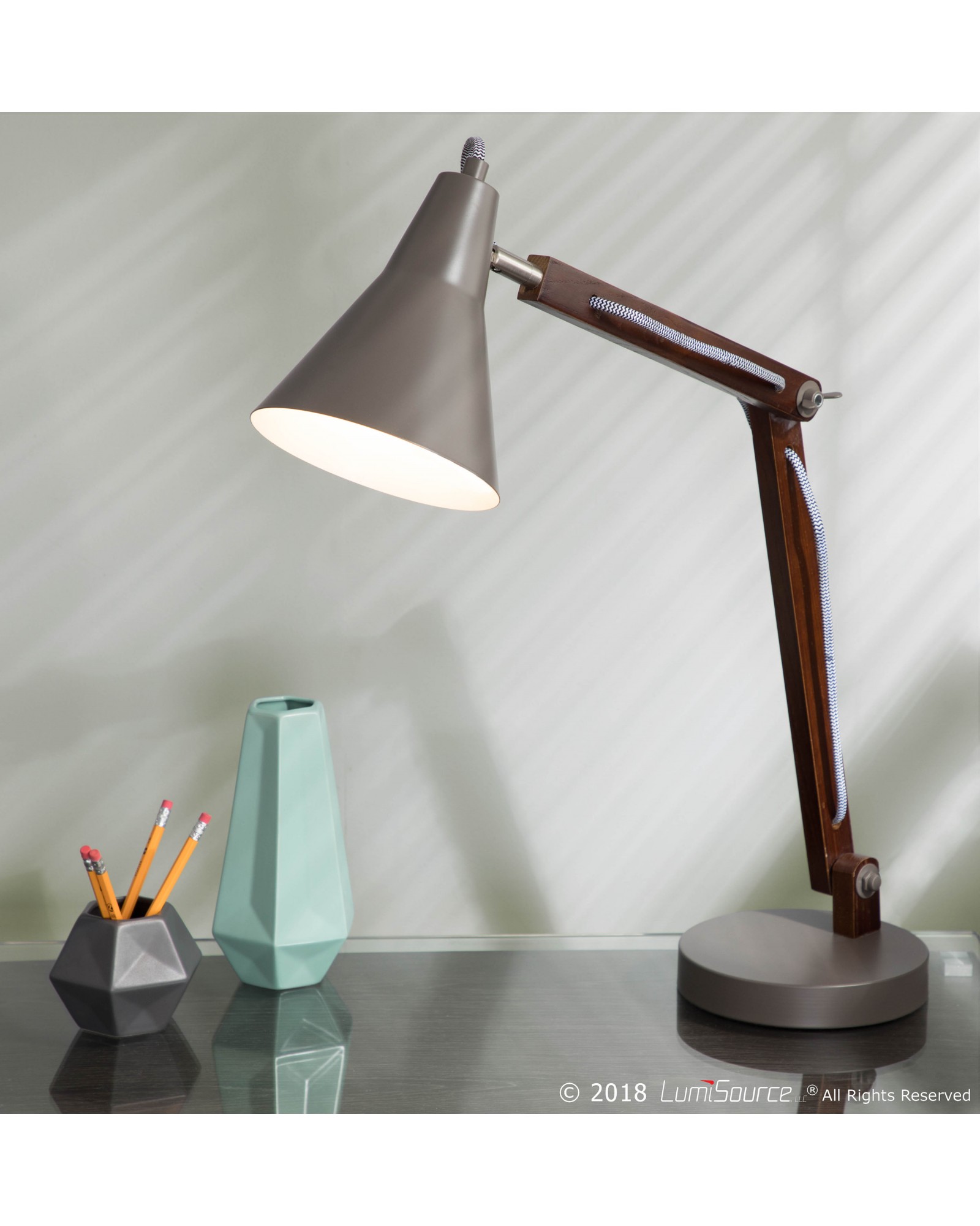 Oregon Industrial Adjustable Table Lamp in Walnut and Grey