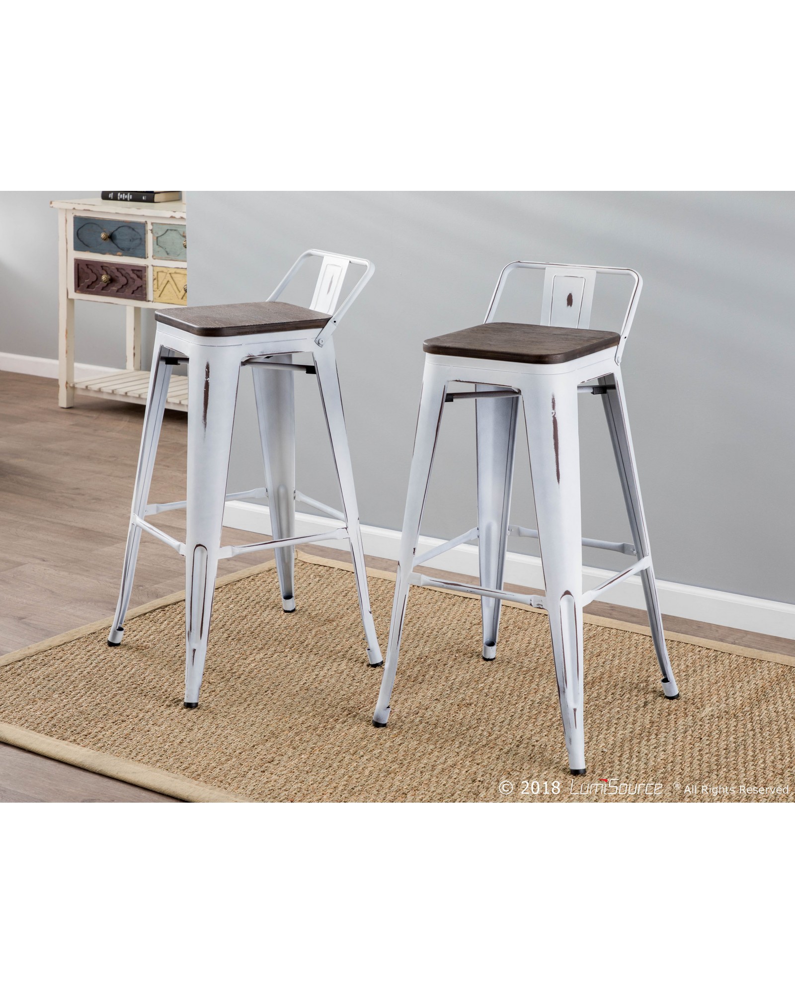 Information on Oregon Industrial Low Back Barstool in Vintage White and Espresso - Set of 2